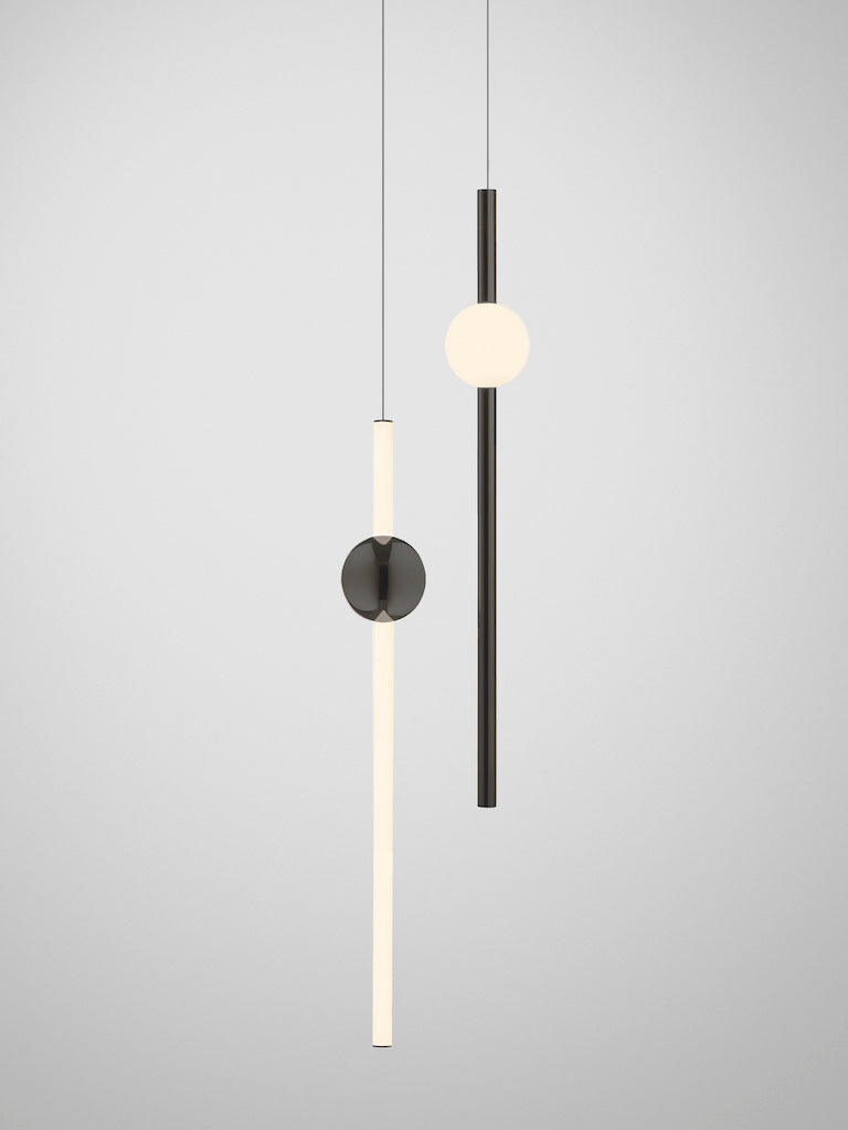 Orion comprises simple modular lights with opposing opaque and solid polished gunmetal spheres along with opaque and solid gunmetal tubes. These connect and expand horizontally and vertically to create bespoke constellations of light with infinite adaptations.